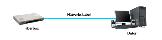 Din dator ska ha ett nätverkskort (vilket de flesta datorer har idag) och en Ethernet-port. Koppla en nätverkssladd mellan den porten och port 1 på fiberboxen.