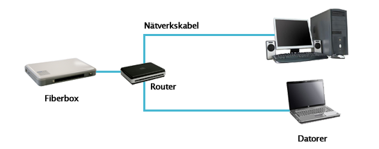 Har du flera datorer, så behöver du en router. Den fungerar som ett grenuttag och ger dig fler portar att koppla utrustning till. Du kan givetvis också använda en trådlös router och skapa ett trådlöst nätverk hemma.